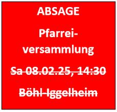 Iggelheim. Am Sa 08. Februar 2025, 14:30 Uhr entfällt wegen Krankheit und Überlastung die Pfarreiversammlung